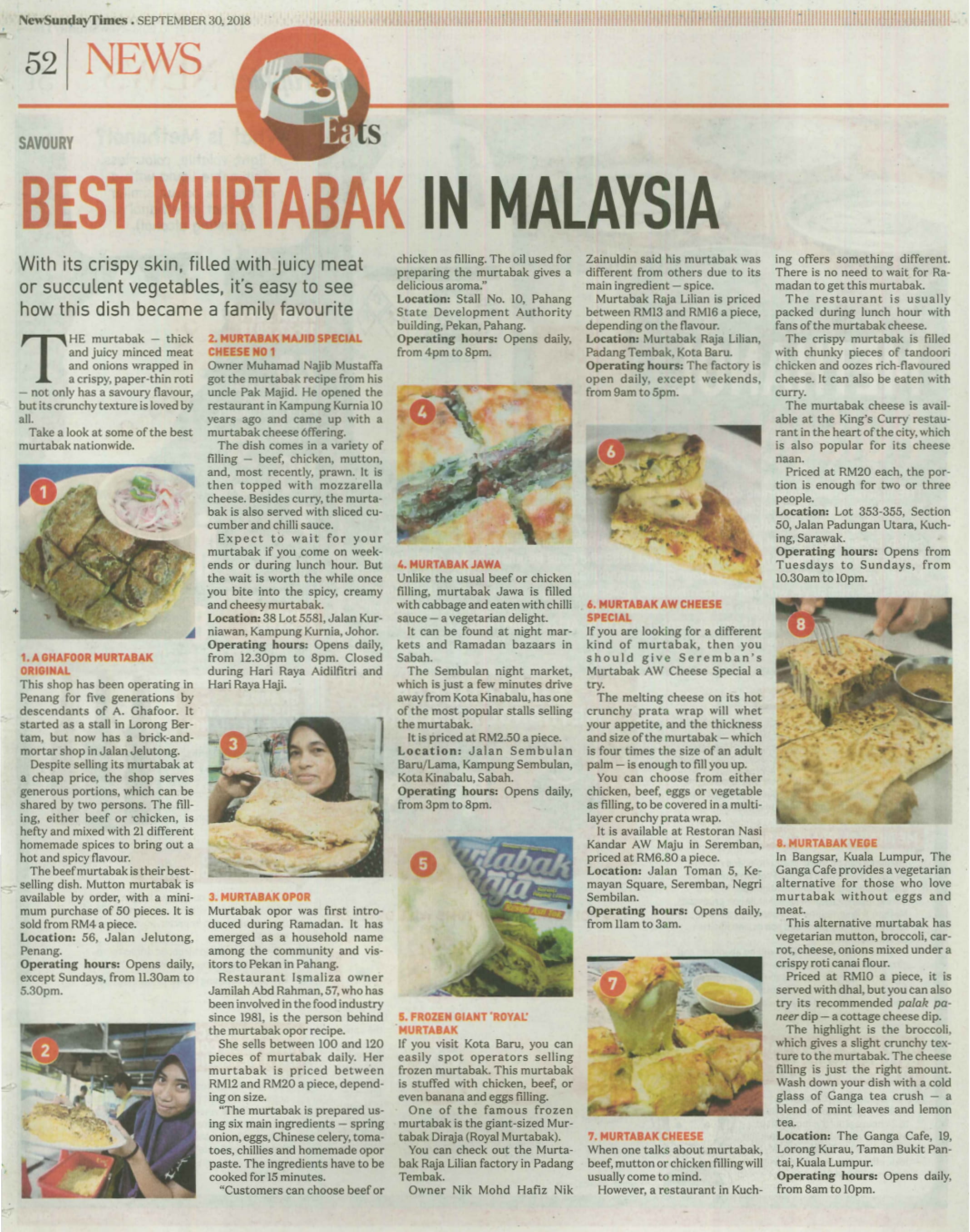 News Strait Times, “Best Murtabak In Malaysia,” Rimbunan: Pangkalan Data Pengajian Melayu, accessed February 3, 2026, https://rimbunan.nusa.my/rimbun/items/show/754.