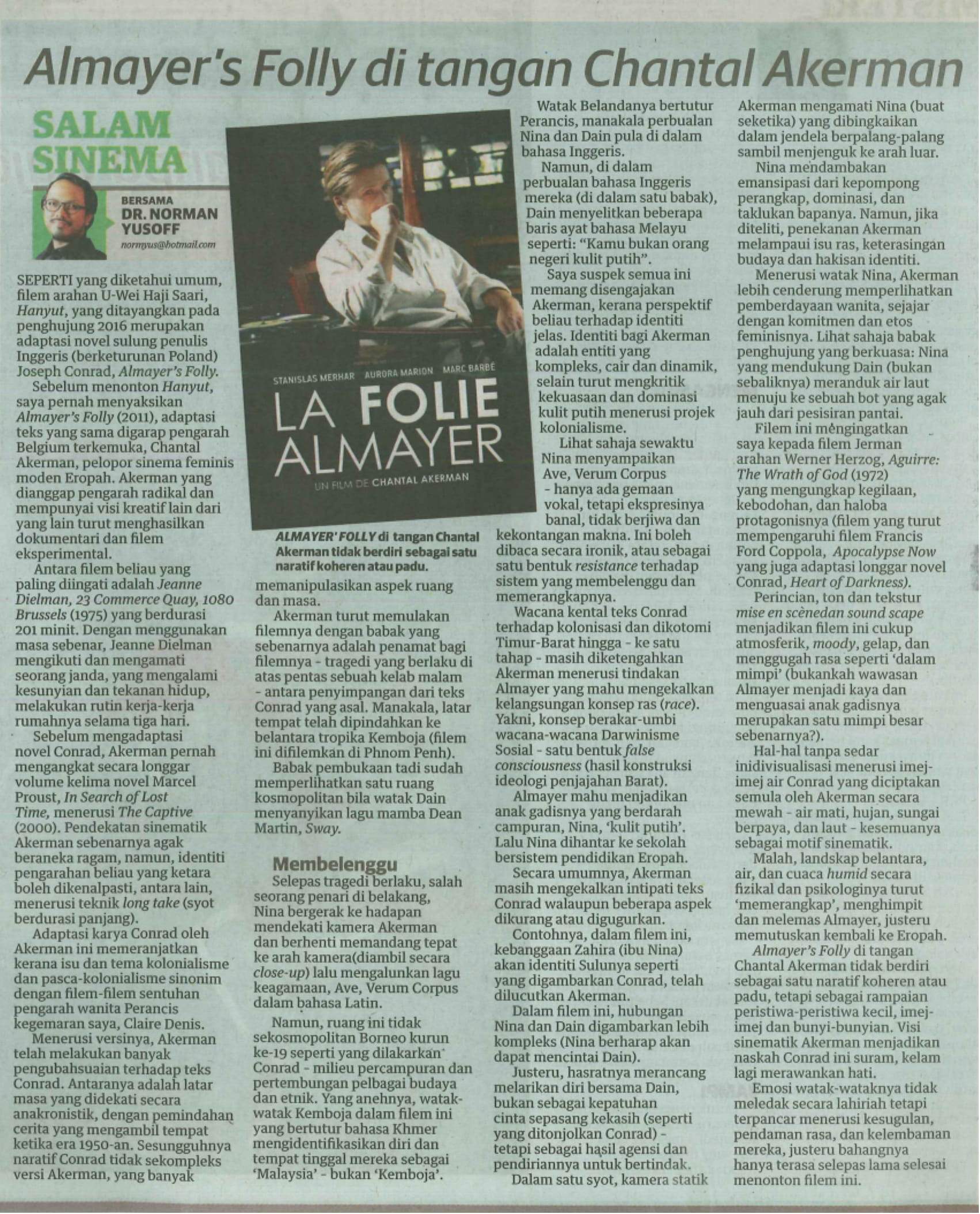 Dr Noorman Yusoff, “Almayer's Folly Di Tangan Chantal Ankerman,” Rimbunan: Pangkalan Data Pengajian Melayu, accessed February 3, 2026, https://rimbunan.nusa.my/rimbun/items/show/796.