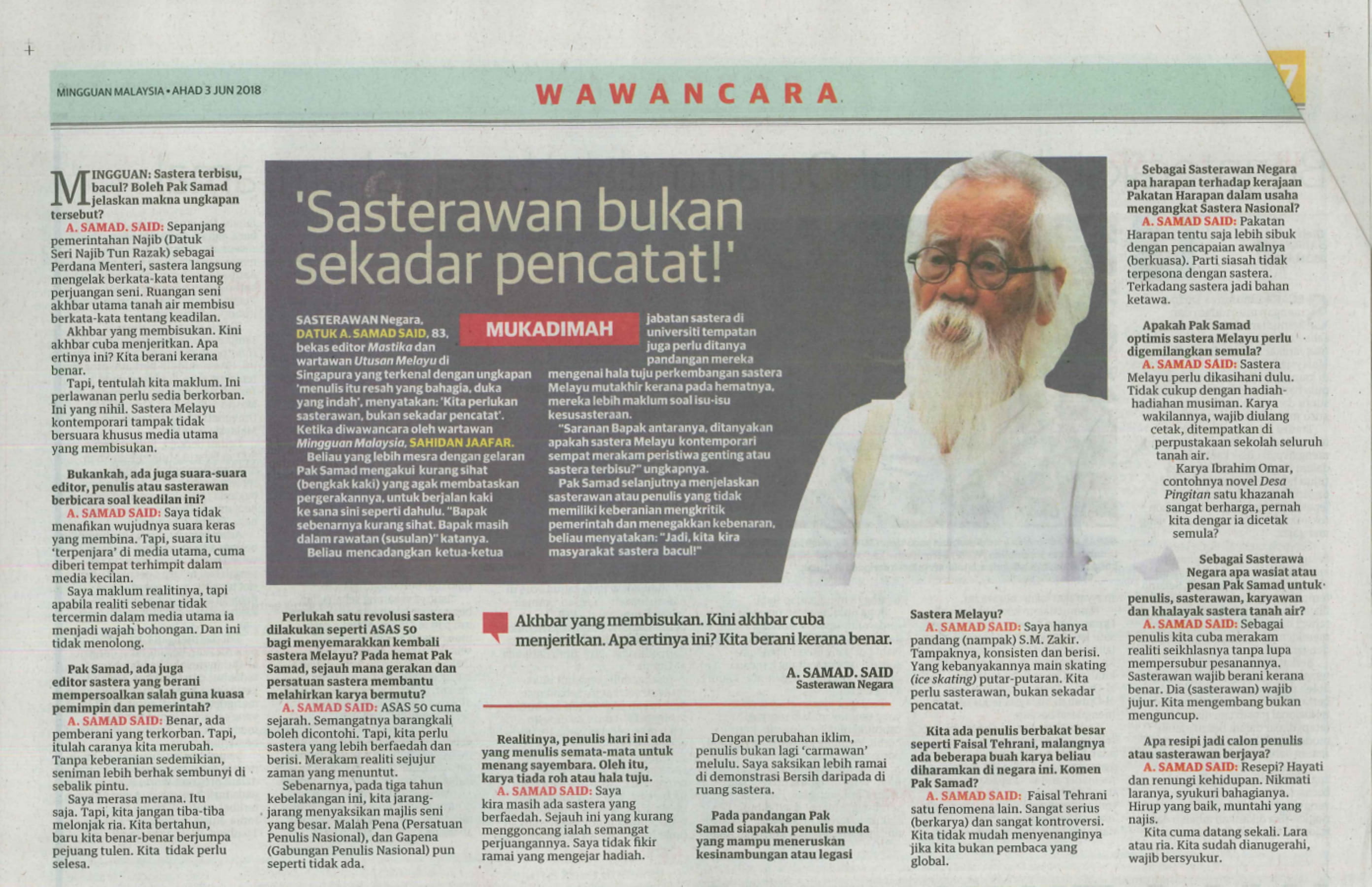 Mingguan Malaysia, “'Sasterawan Bukan Sekadar Pencatat!',” Rimbunan: Pangkalan Data Pengajian Melayu, accessed February 3, 2026, https://rimbunan.nusa.my/rimbun/items/show/833.