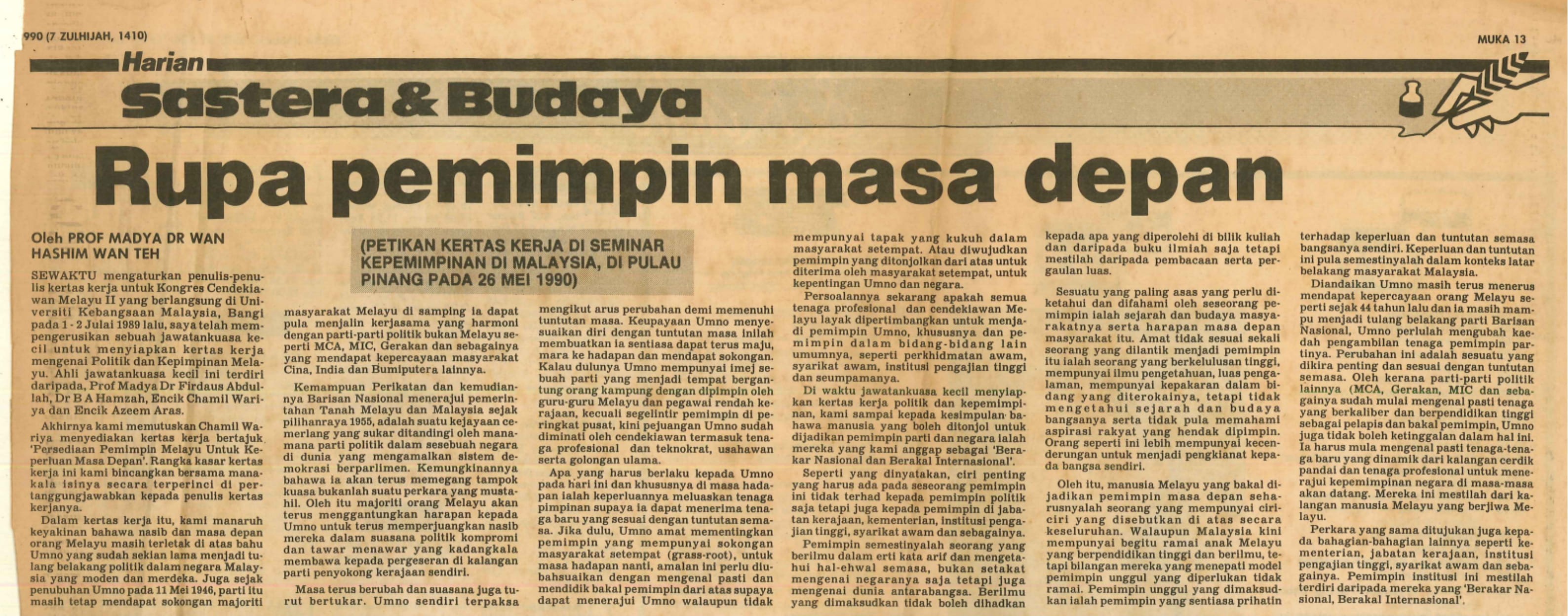 Prof Madya Dr Wan Hashim Wan Teh, “Rupa Pemimpin Masa Depan,” Rimbunan: Pangkalan Data Pengajian Melayu, accessed February 3, 2026, https://rimbunan.nusa.my/rimbun/items/show/840.