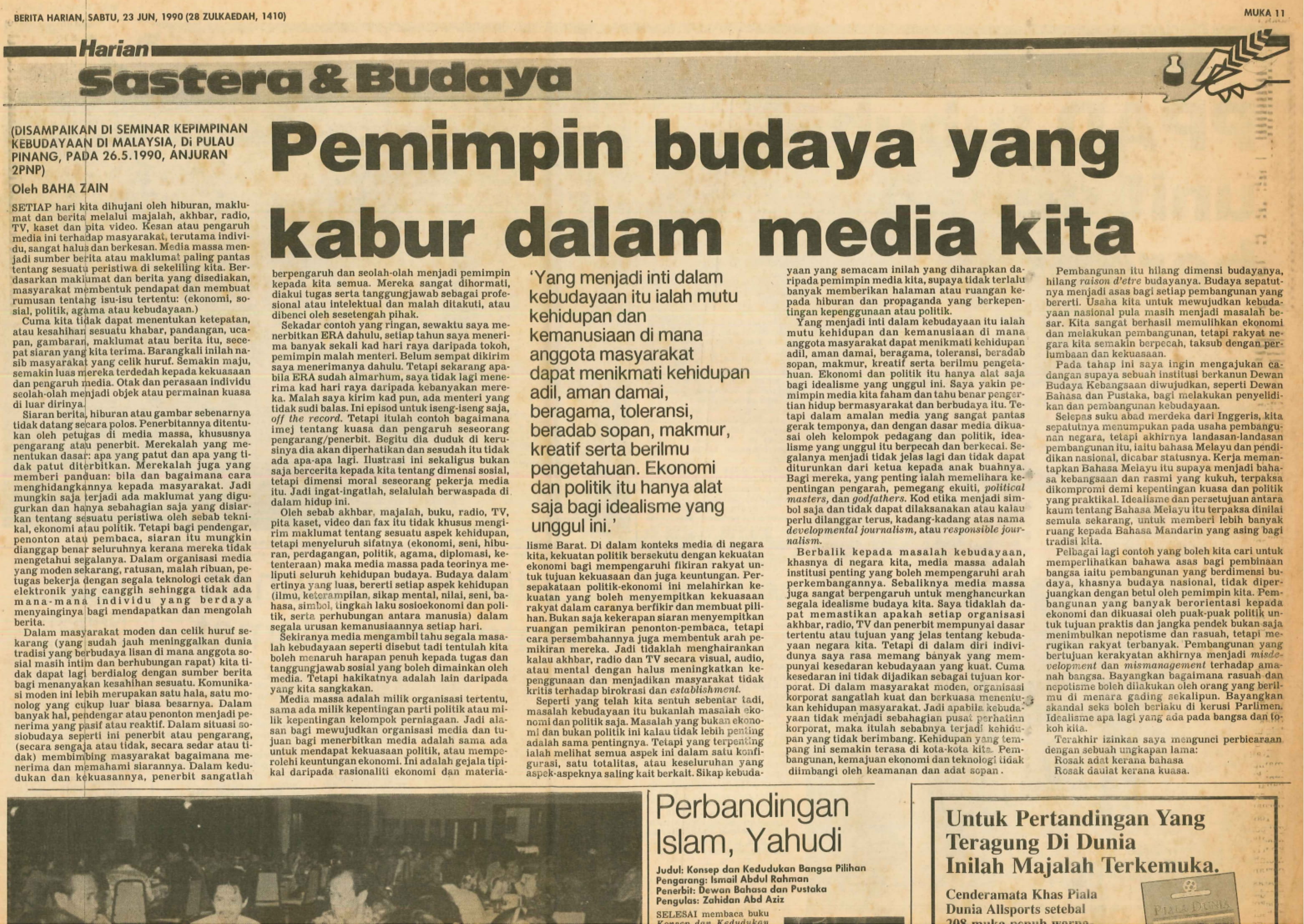 Baha Zain, “Pemimpin Budaya Yang Kabur Dalam Media Kita,” Rimbunan: Pangkalan Data Pengajian Melayu, accessed February 3, 2026, https://rimbunan.nusa.my/rimbun/items/show/841.