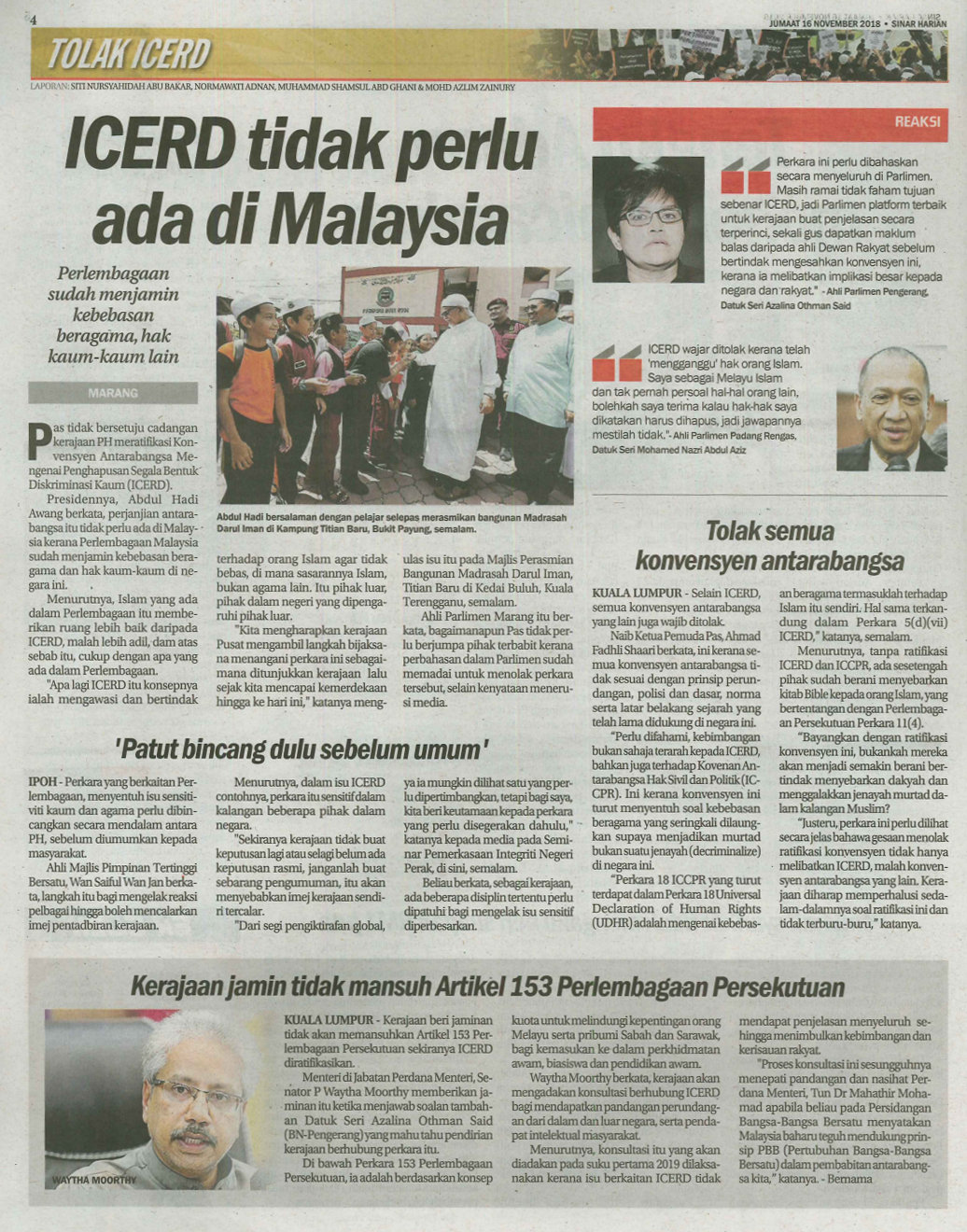 Sinar Harian, “ICERD tidak perlu ada di Malaysia,” Rimbunan: Pangkalan Data Pengajian Melayu, accessed February 3, 2026, https://rimbunan.nusa.my/rimbun/items/show/868.