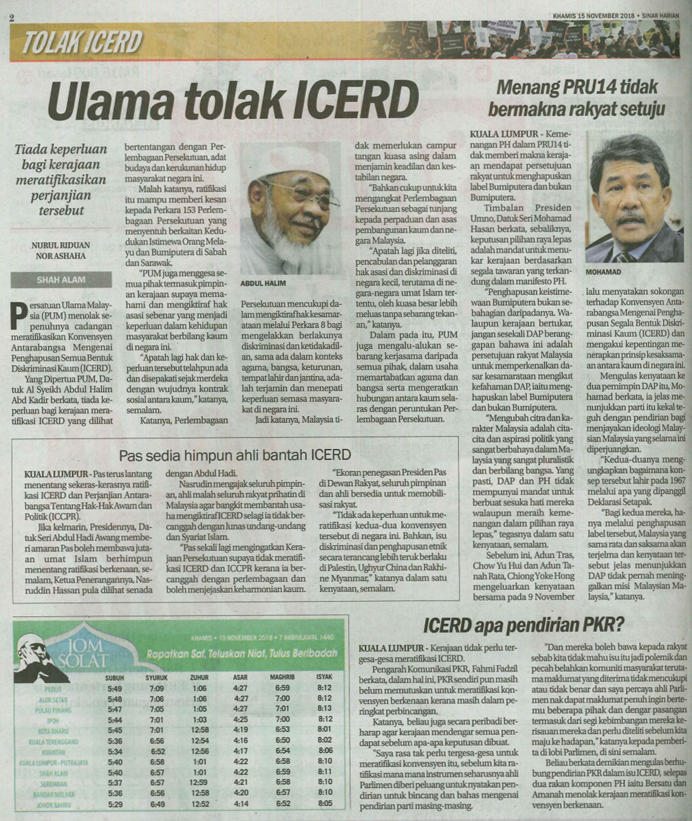 Nurul Riduan Nurul Ashaha, “Ulama tolak ICERD,” Rimbunan: Pangkalan Data Pengajian Melayu, accessed February 3, 2026, https://rimbunan.nusa.my/rimbun/items/show/870.
