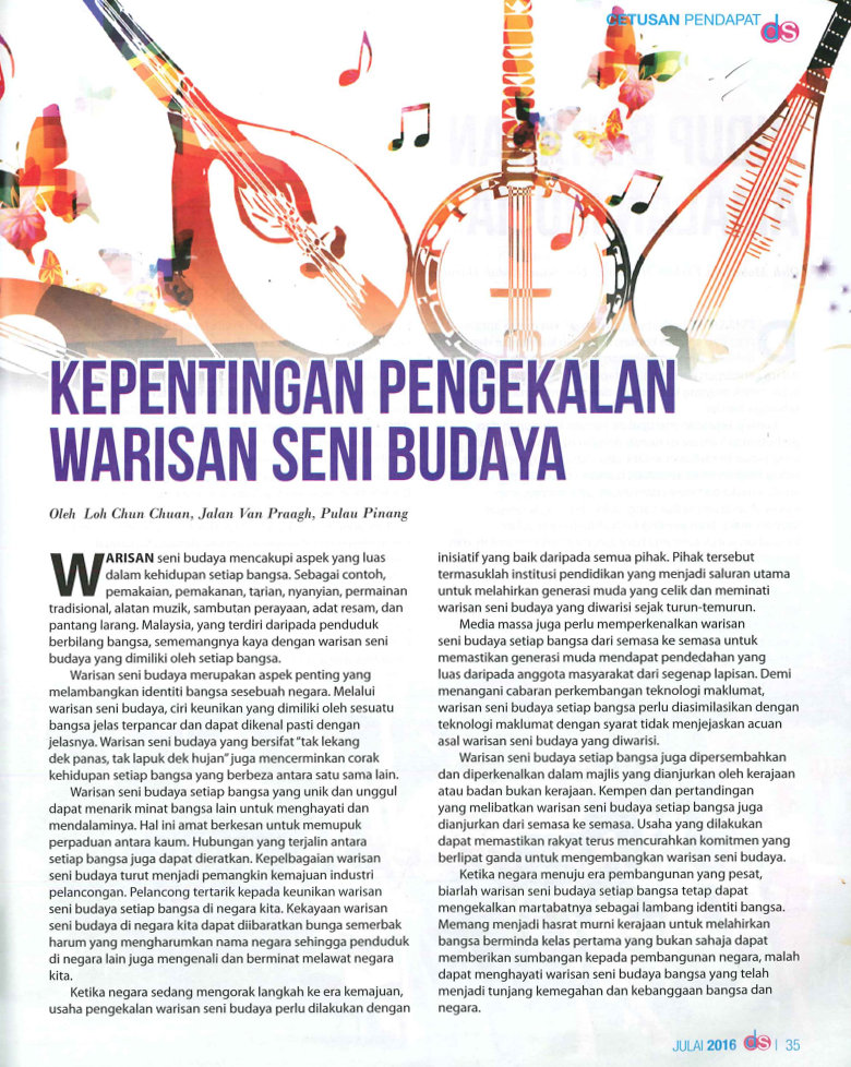 Loh Chun Chuan , “Kepentingan pengekalan warisan seni budaya,” Rimbunan: Pangkalan Data Pengajian Melayu, accessed February 3, 2026, https://rimbunan.nusa.my/rimbun/items/show/897.