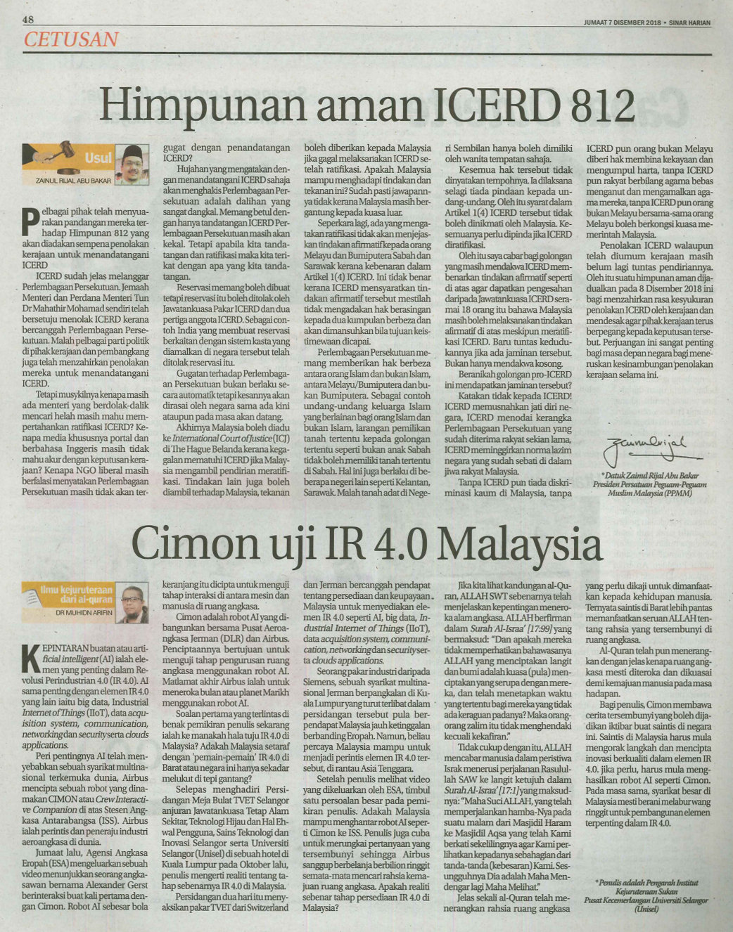 Keratan Akhbar Sinar Harian