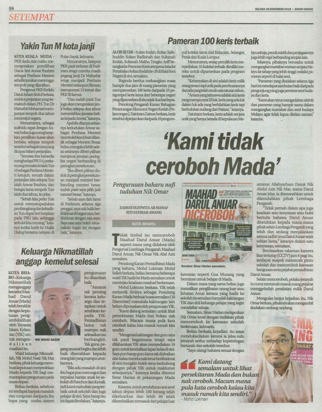 Keratan Akhbar Sinar Harian