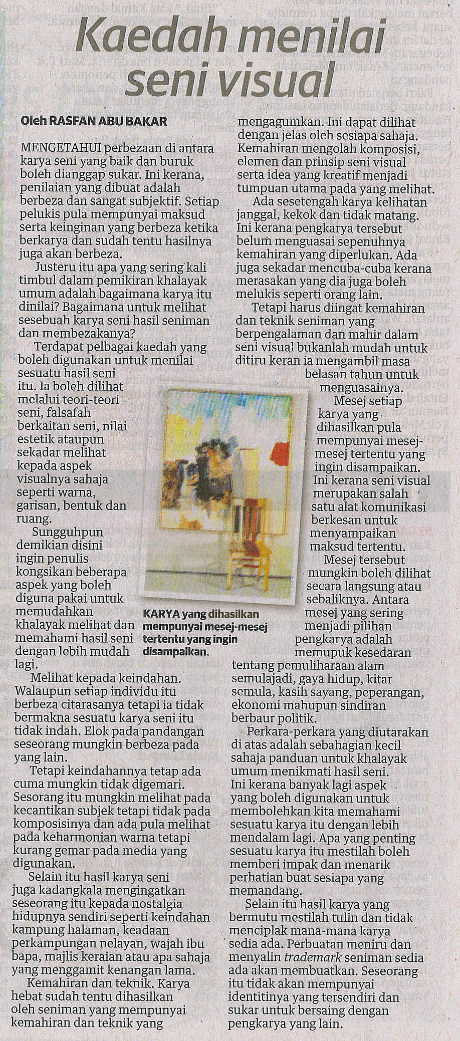 Rasfan Abu Bakar, “Kaedah menilai seni visual,” Rimbunan: Pangkalan Data Pengajian Melayu, accessed February 3, 2026, https://rimbunan.nusa.my/rimbun/items/show/971.