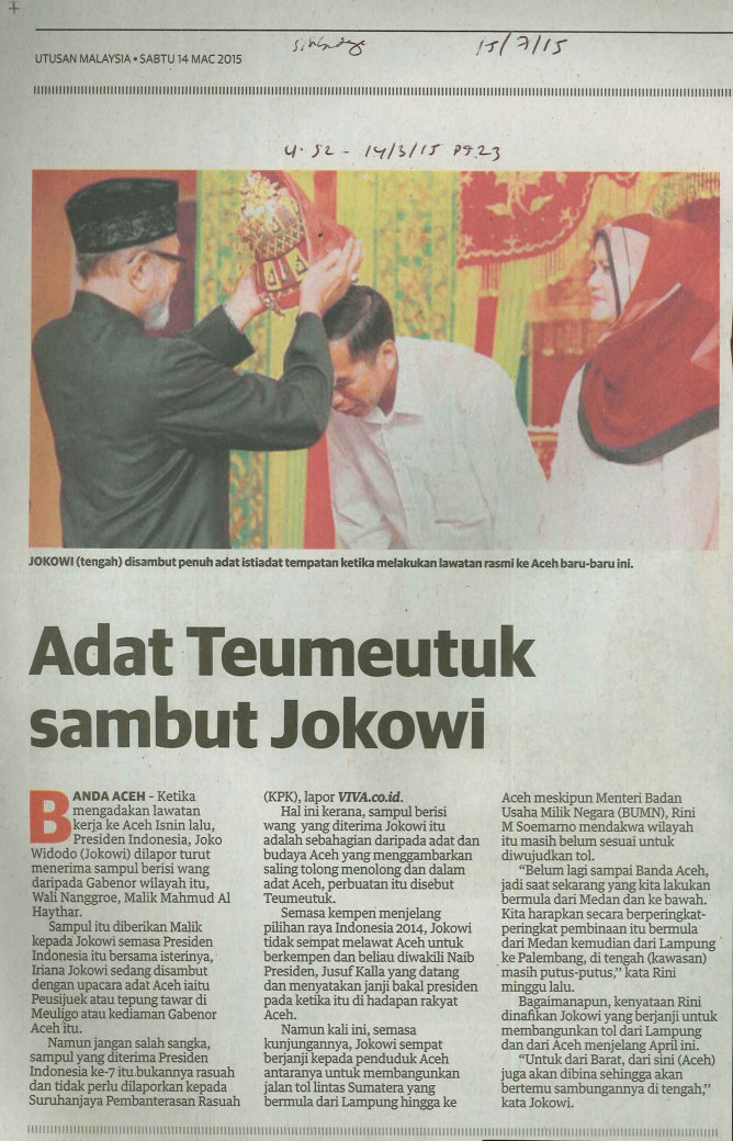 Utusan Malaysia, “Adat Teumeutuk sambut Jokowi,” Rimbunan: Pangkalan Data Pengajian Melayu, accessed February 3, 2026, https://rimbunan.nusa.my/rimbun/items/show/984.