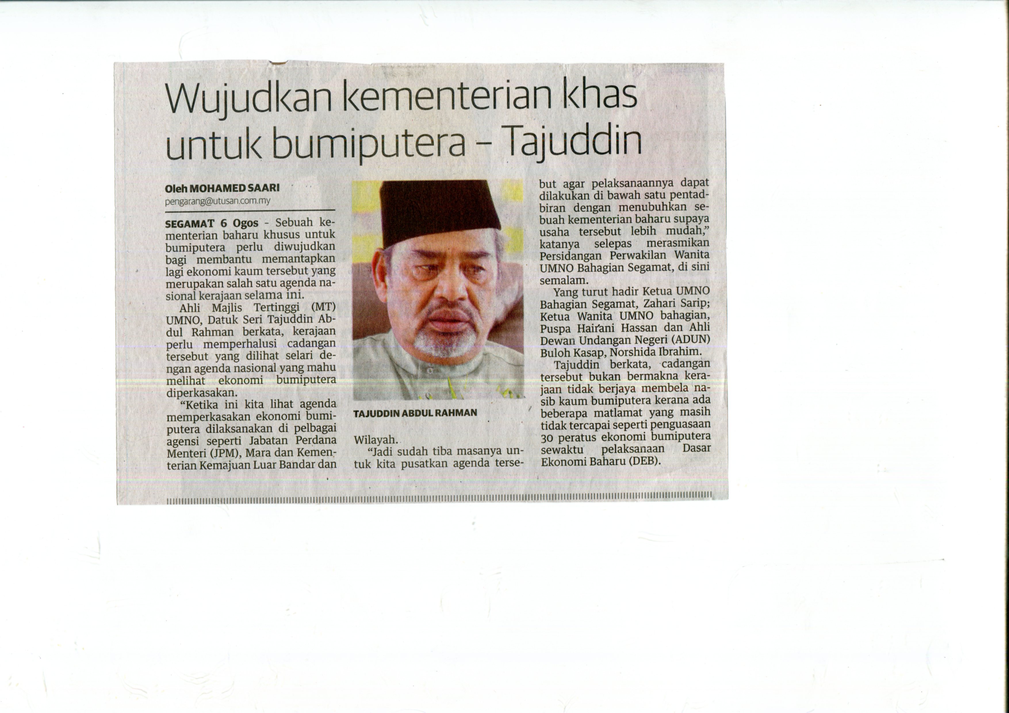mohamed saari, “Wujudkan kementerian khas untuk Bumiputera - Tajuddin,” Rimbunan: Pangkalan Data Pengajian Melayu, accessed February 3, 2026, https://rimbunan.nusa.my/rimbun/items/show/994.